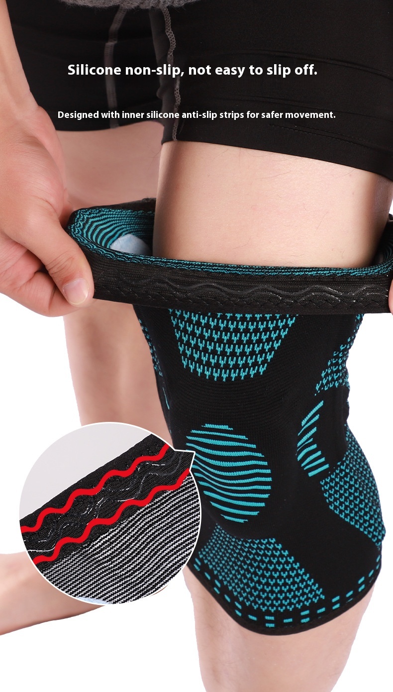 - Des zones agrippantes en silicone pour maintenir la genouillère en place